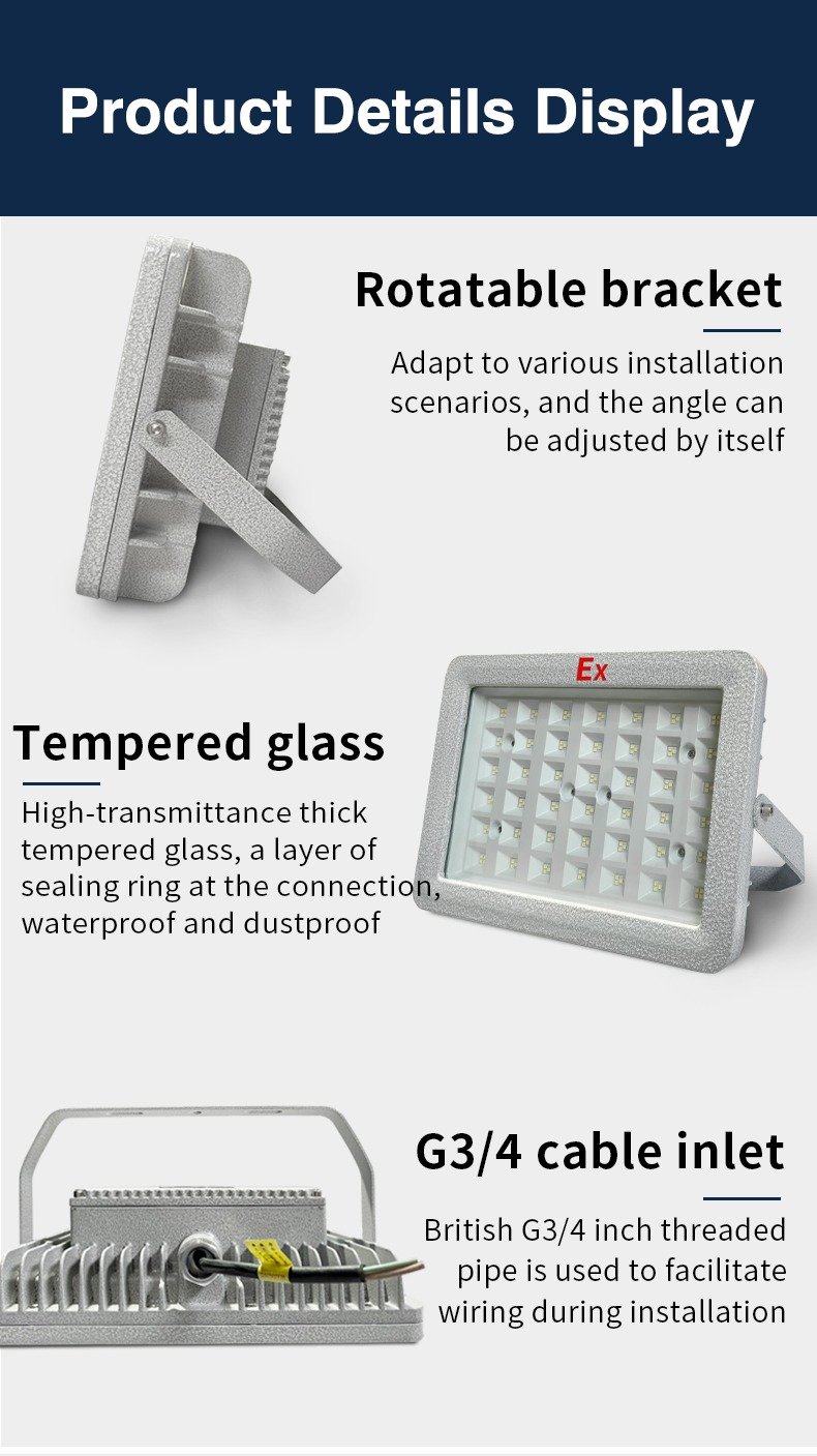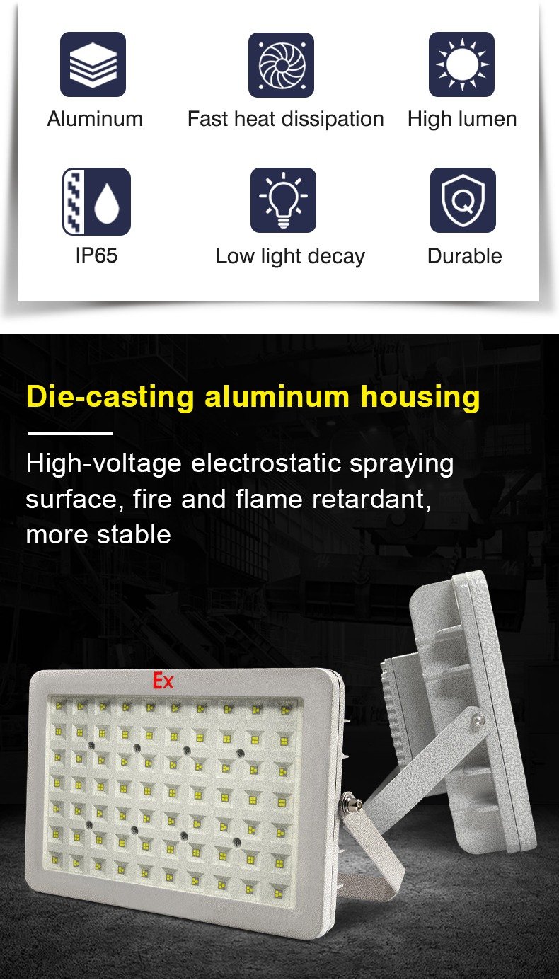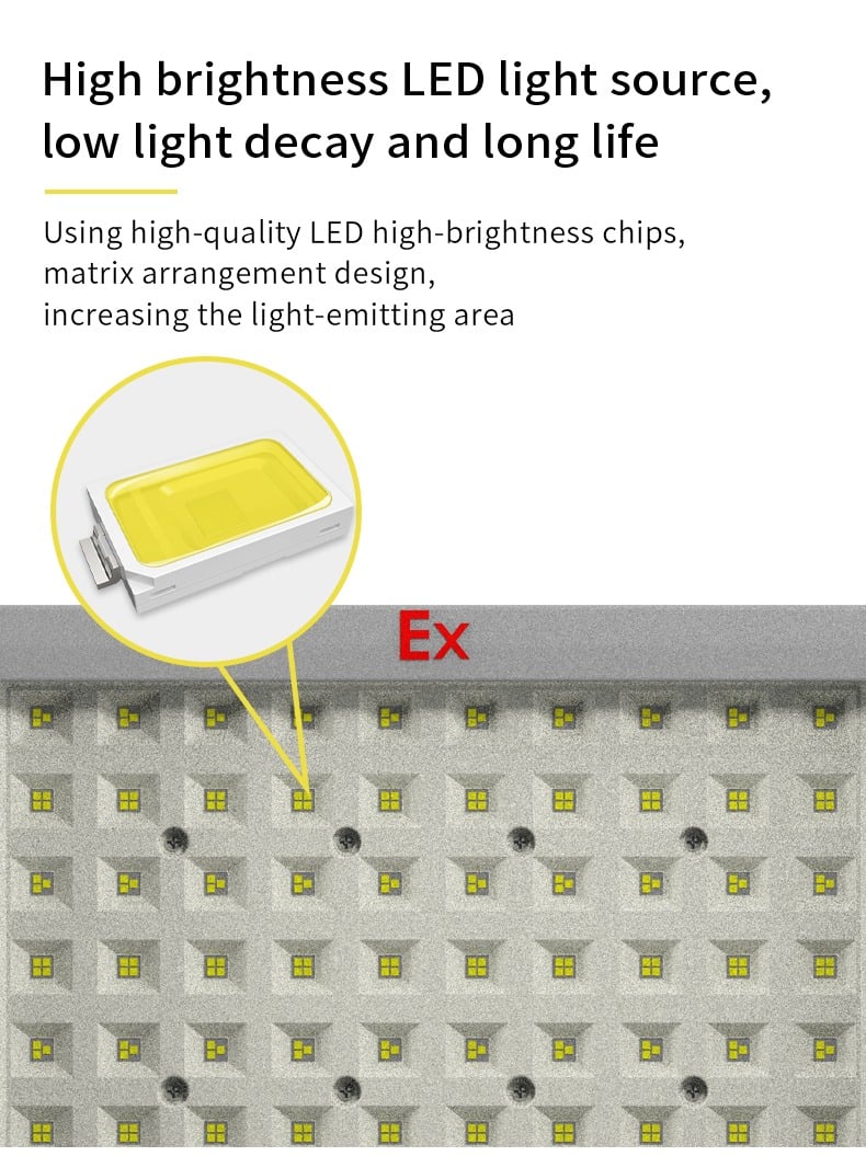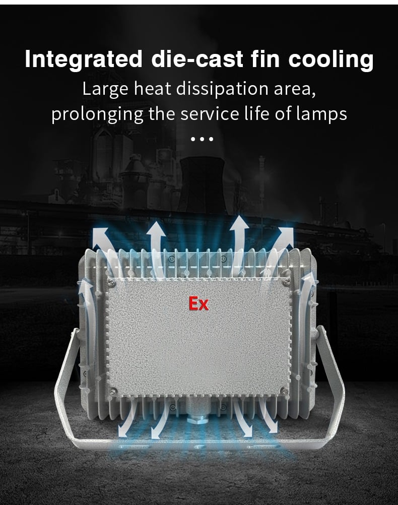تجمع هذه الإنارة بين الكفاءة العالية والمتانة، بفضل هيكلها المصنوع من الألمنيوم المصبوب المقاوم للتآكل والزجاج المقوّى المقاوم للانفجار، مما يجعلها مثالية للاستخدام في مصافي النفط، والمصانع البتروكيميائية، والمستودعات، وأنفاق الخدمات.