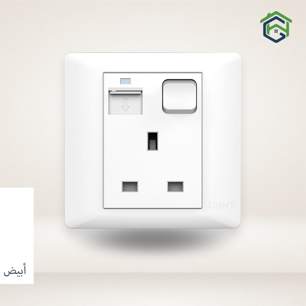 ʘ فيش 13 أمبير مفرد مع مفتاح و USB 2.1 أمبير ريڤال (أبيض)