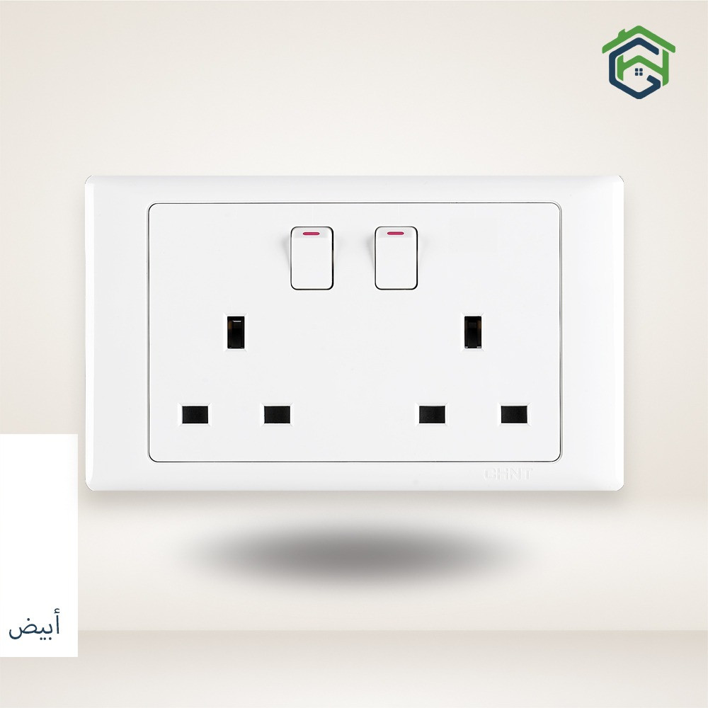 ʘ فيش 13 أمبير مزدوج مع مفتاح ريڤال (أبيض)
