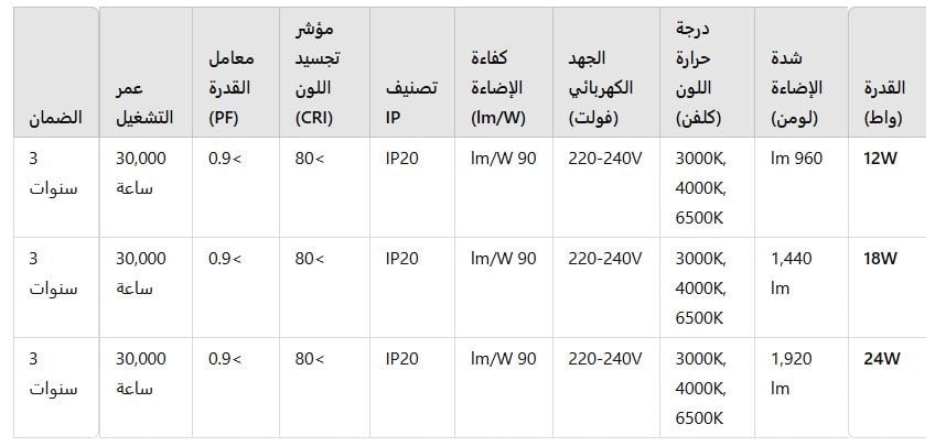 ✔ خيارات متعددة للقدرة الكهربائية – متوفر بقدرات 12 واط، 18 واط، و24 واط لتلبية جميع الاحتياجات.