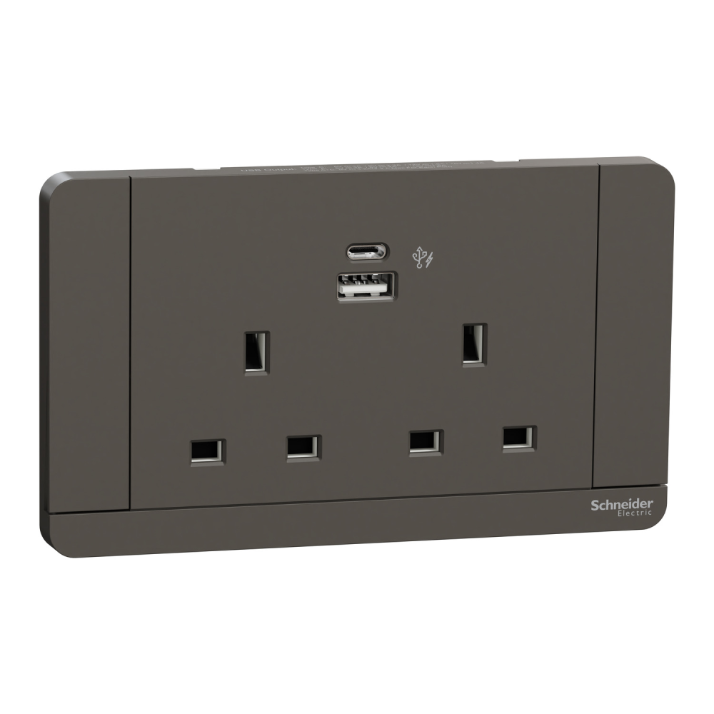 MoreThe Schneider AvatarOn Switched Socket (2 Gang – Double Pole, 13A, 250V AC) combines safety, convenience, and modern design. Equipped with a triple socket outlet, dual USB charging ports, and a Type-C port delivering up to 21W total output, it allows you to power appliances and charge smart devices simultaneously.