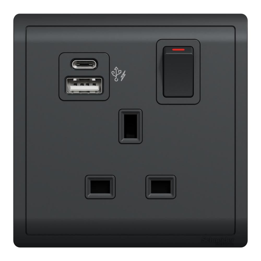 فيش 13 أمبير مع يو اس بي - لون اسود
