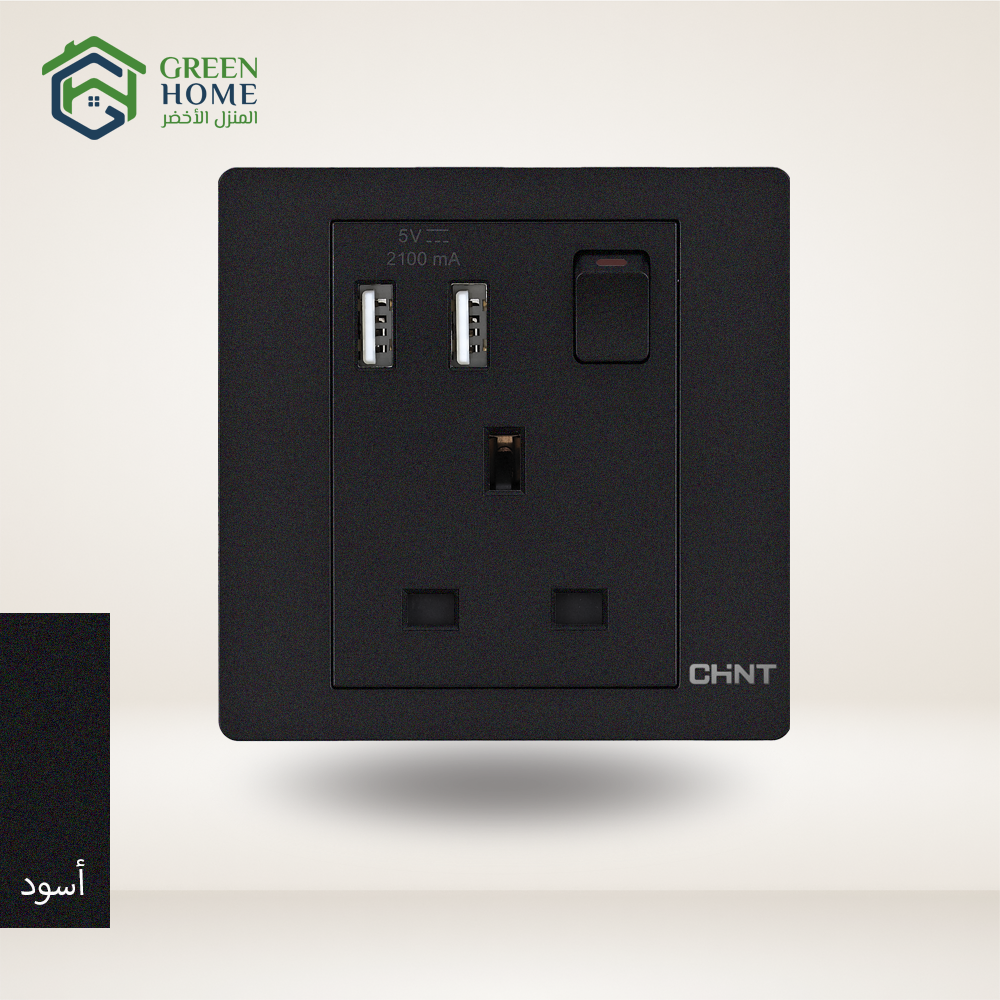 فيش 13 أمبير و USB 2 بانوراما (أسود)