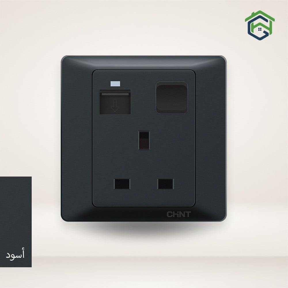 ʘ فيش 13 أمبير مفرد مع مفتاح و USB 2.1 أمبير ريڤال (أسود)
